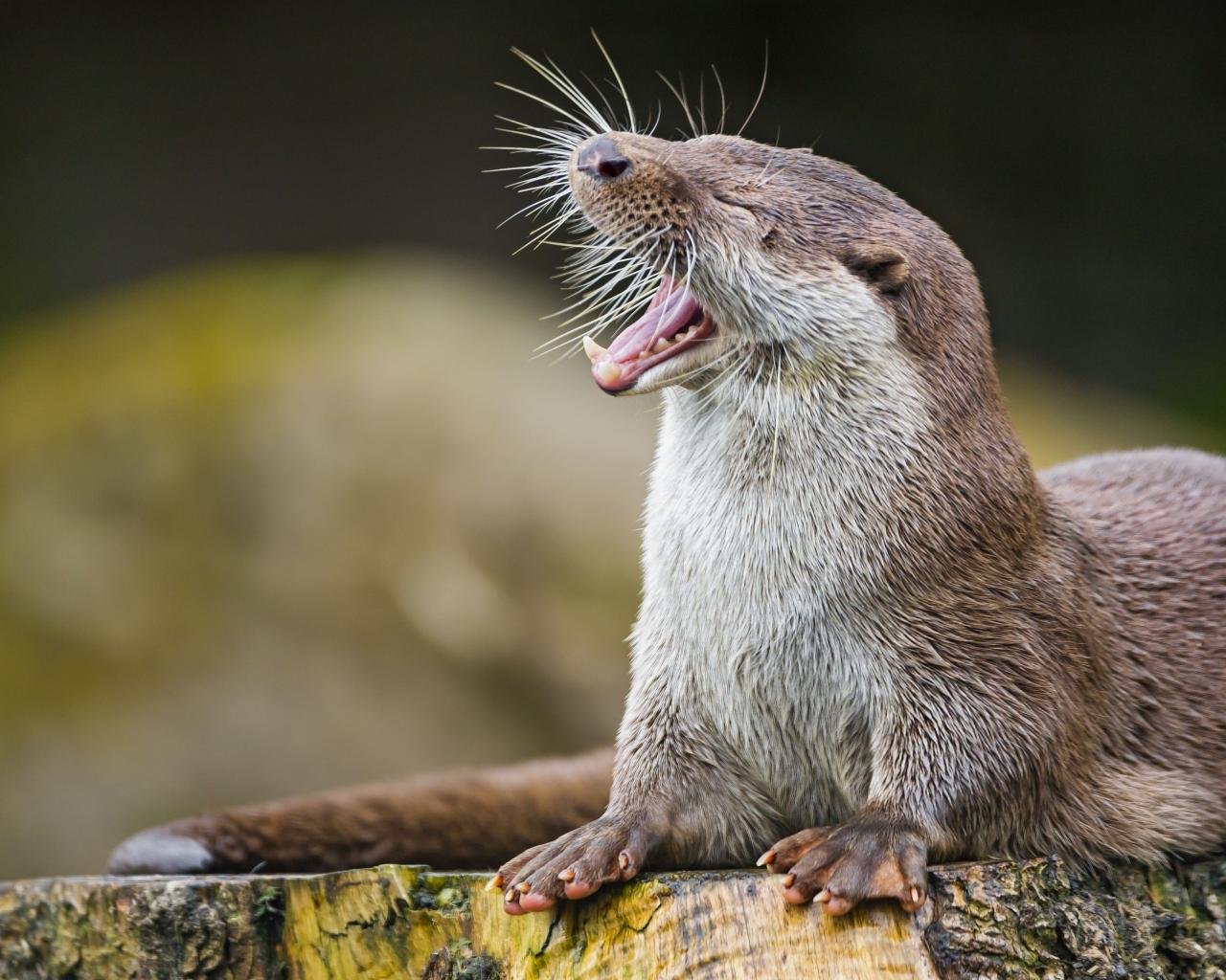 Wallpaper Funny otter yawns