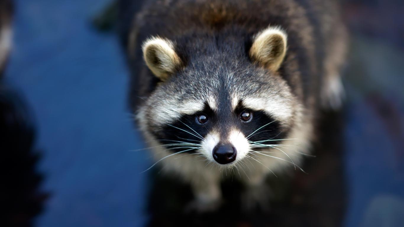 Wallpaper Curious raccoon with black nose in water
