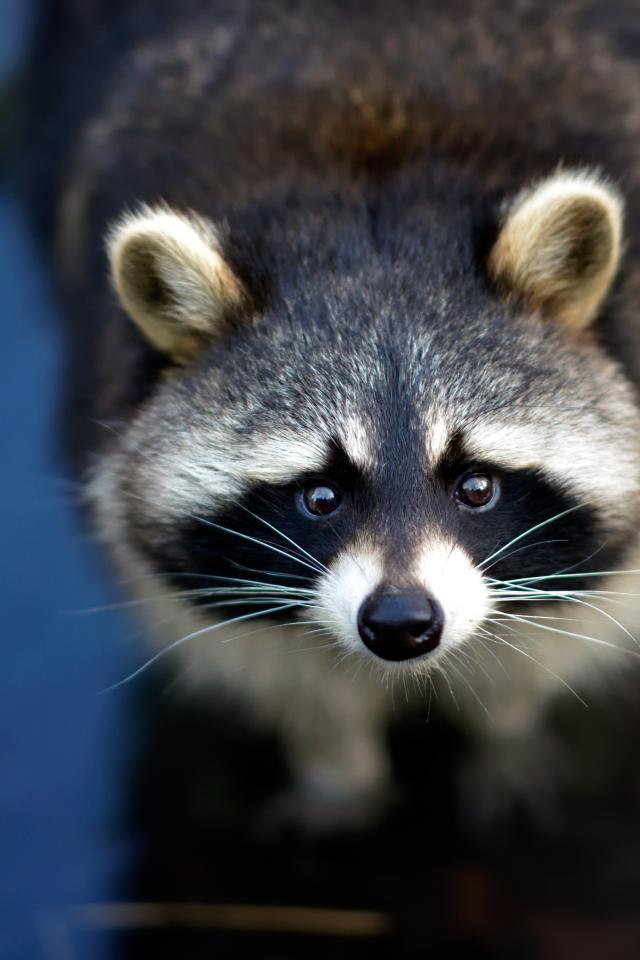 Wallpaper Curious raccoon with black nose in water