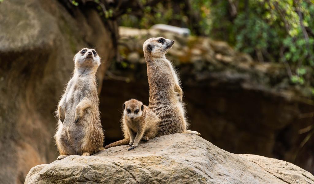 Wallpaper Three meerkats meerkats on a stone in a zoo