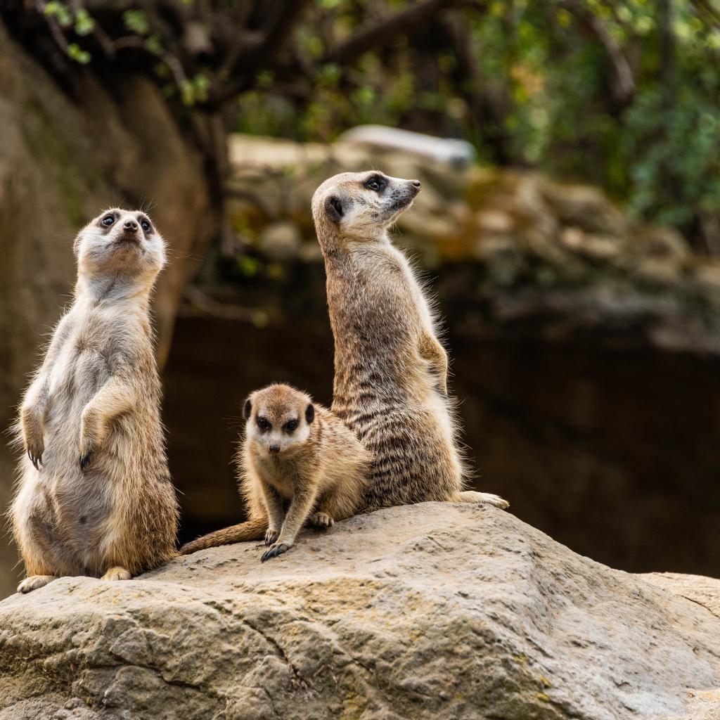 Wallpaper Three meerkats meerkats on a stone in a zoo