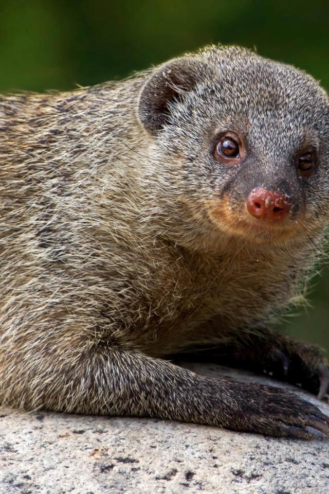 » Wallpaper Gray mongoose lies on a stone