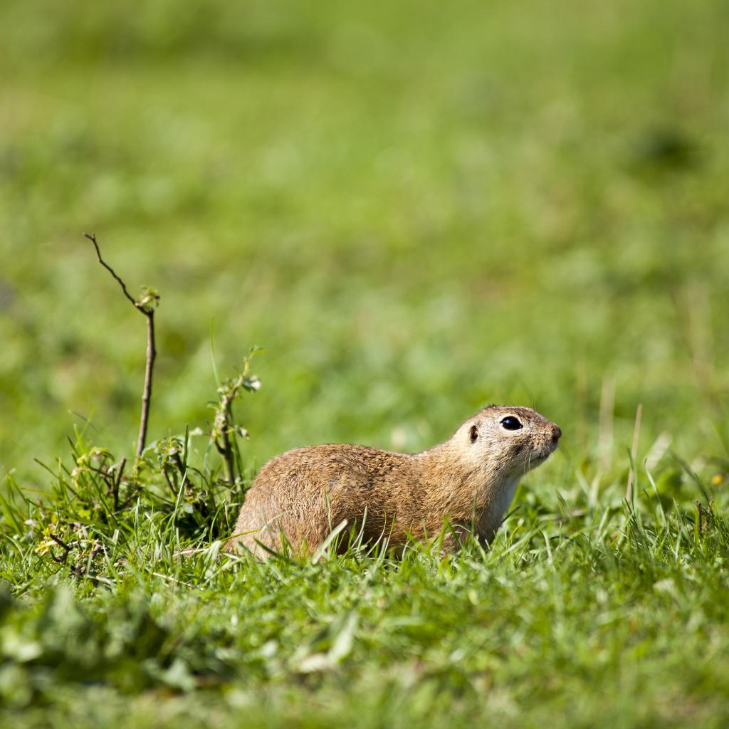 Wallpaper Big gray green-eyed cat lies on the green grass