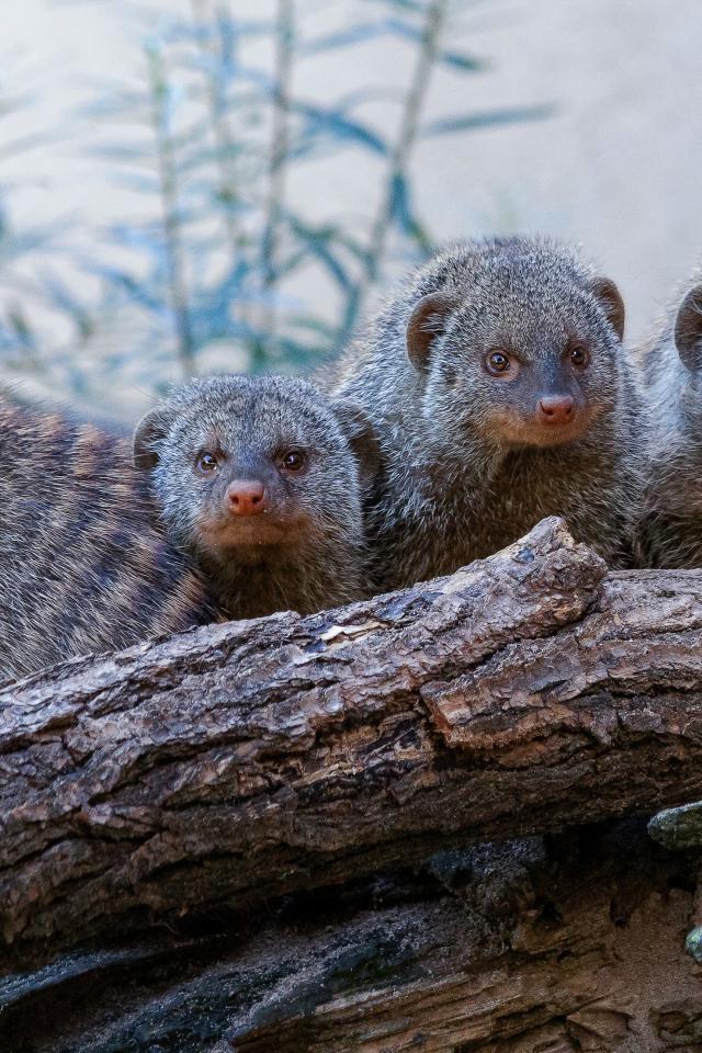 Wallpaper Family of mongoose on dry tree