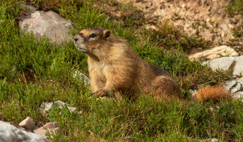 » Wallpaper Marmot sitting on green grass