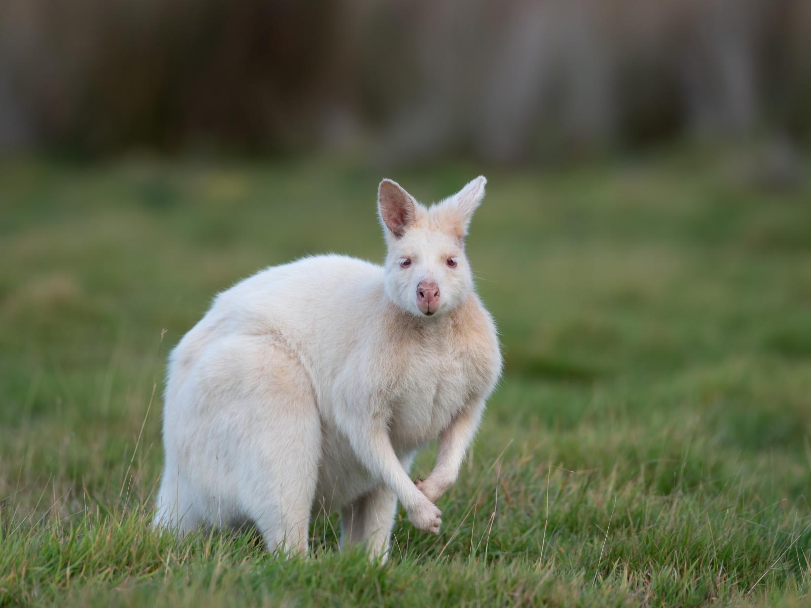 Wallpaper White West Highland White Terrier sitting on green grass with yellow leaves