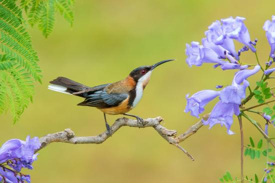 Wallpaper Birdie on a branch with lilac flowers