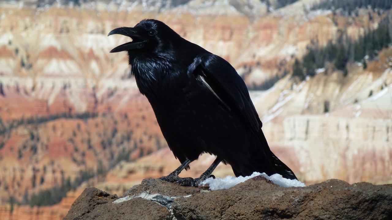 Wallpaper A big black crow on a stone