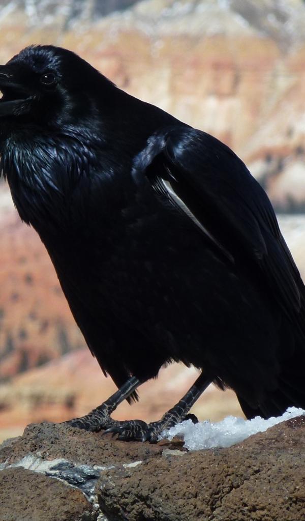 Wallpaper A big black crow on a stone