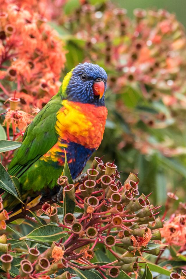 Wallpaper Multicolored Loriket sits on an exotic flower