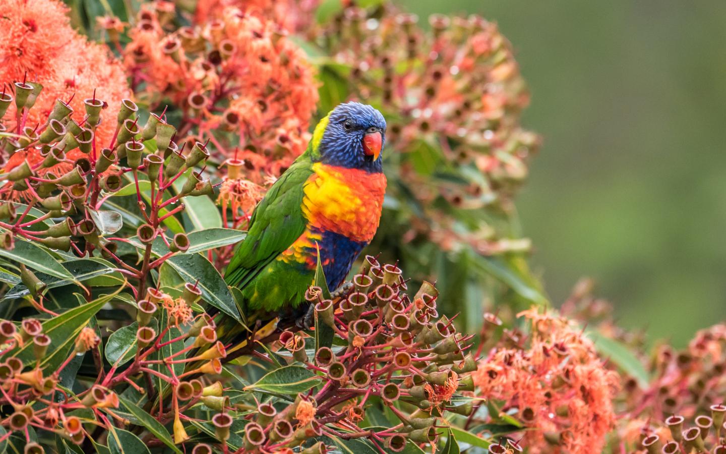 Wallpaper Multicolored Loriket sits on an exotic flower