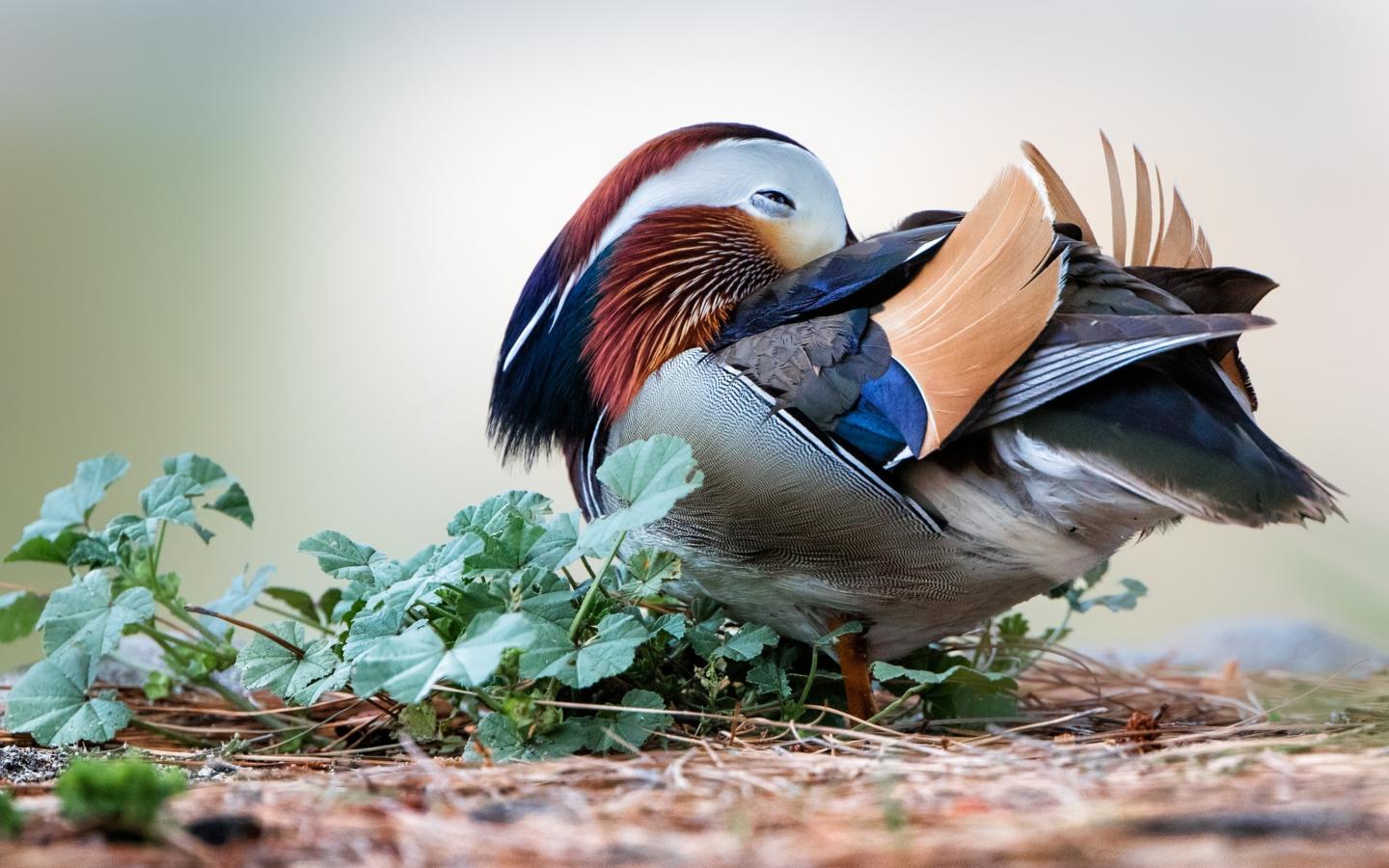 Wallpaper Sleeping colorful mandarin duck