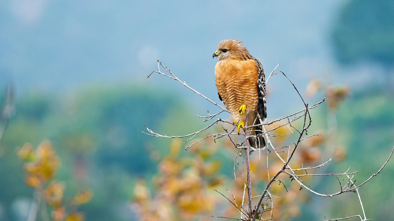 Wallpaper Yellow predatory hawk sits on a branch