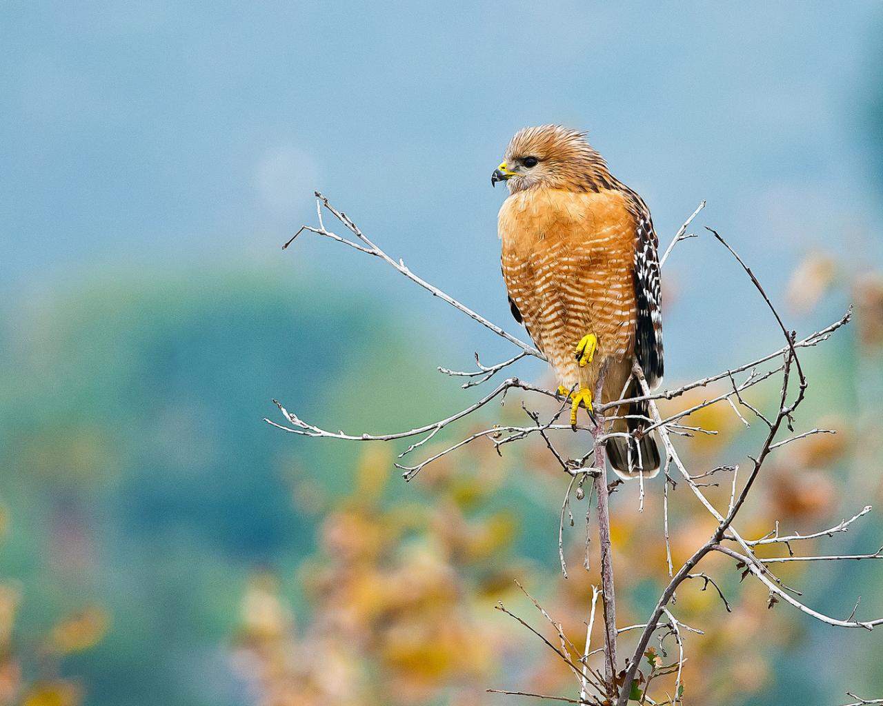 Wallpaper Yellow predatory hawk sits on a branch