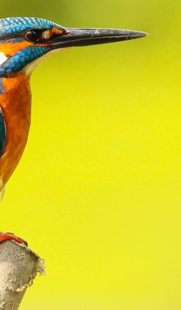 Wallpaper Multi-colored bird kingfisher on yellow background