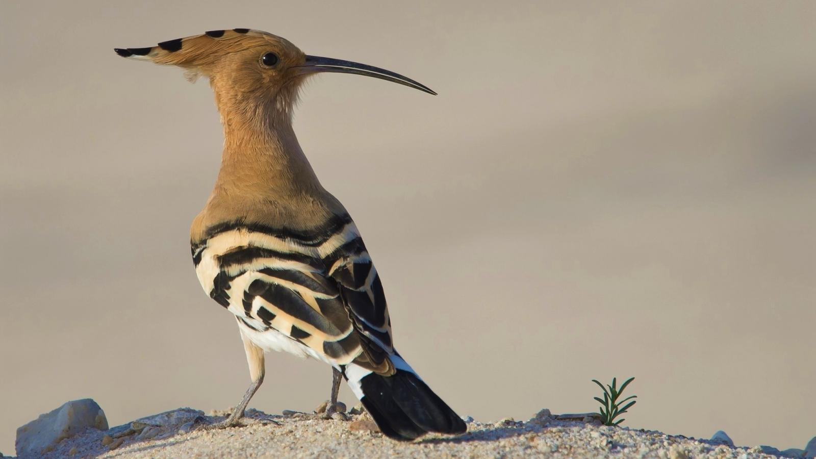 Wallpaper Bird with long beak hoopoe sits on the sand