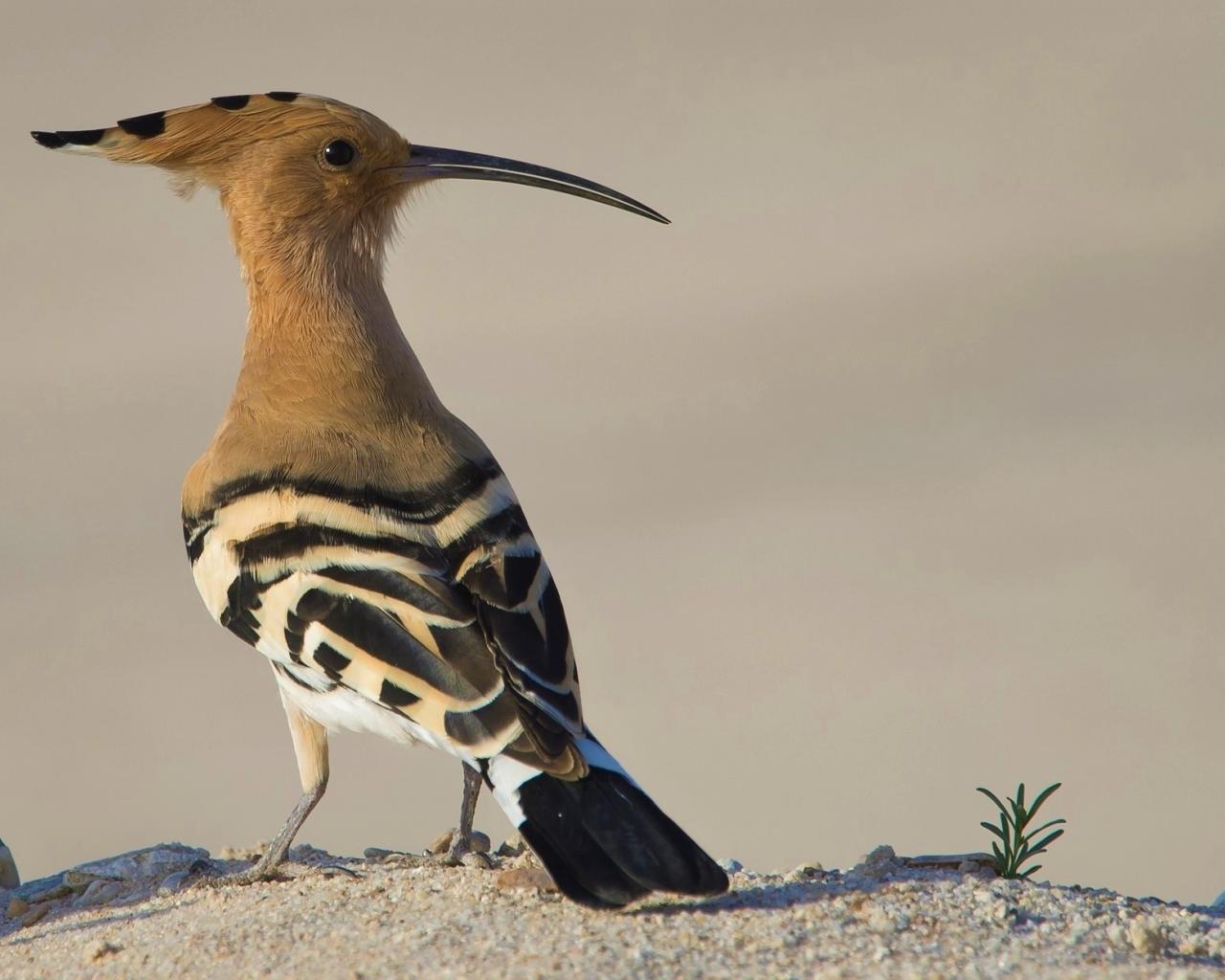Wallpaper Bird with long beak hoopoe sits on the sand