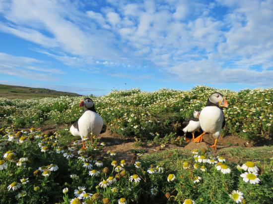 Wallpaper Birds of impasse on a chamomile field under a blue sky
