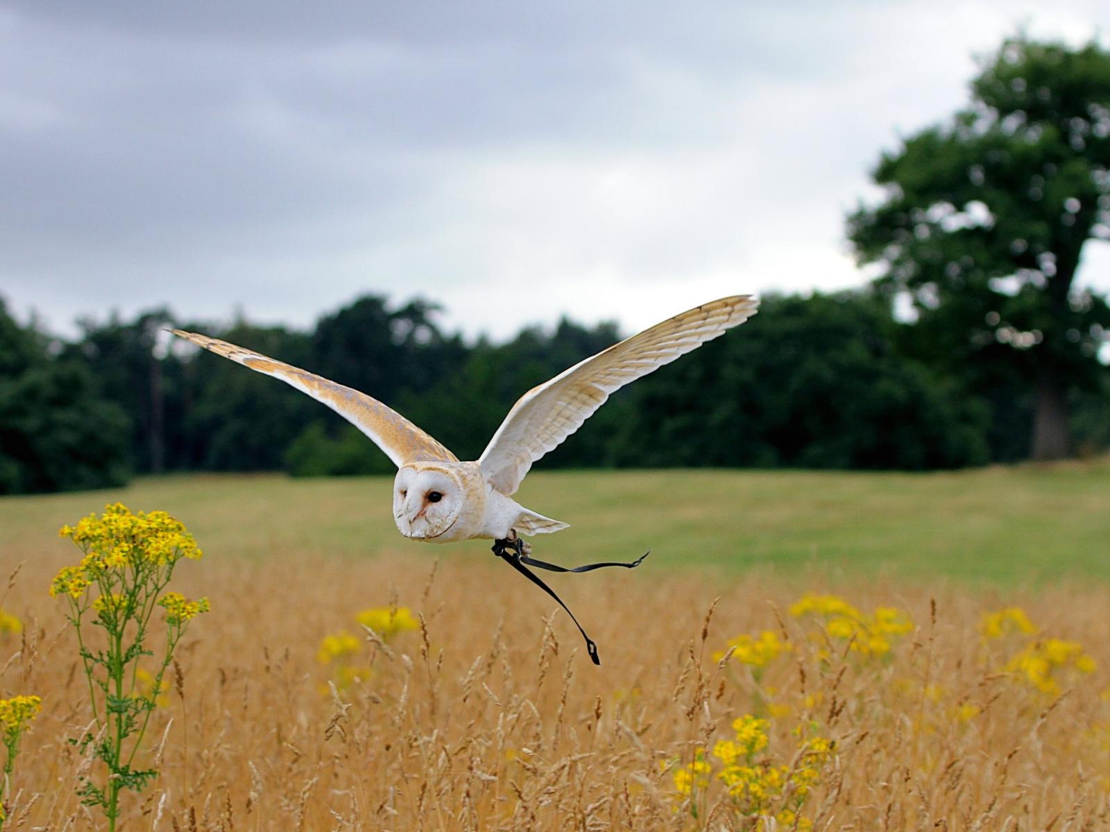 Wallpaper A beautiful owl is flying over the field