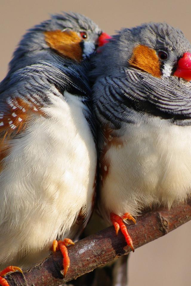 Wallpaper Two cute canaries on a tree branch
