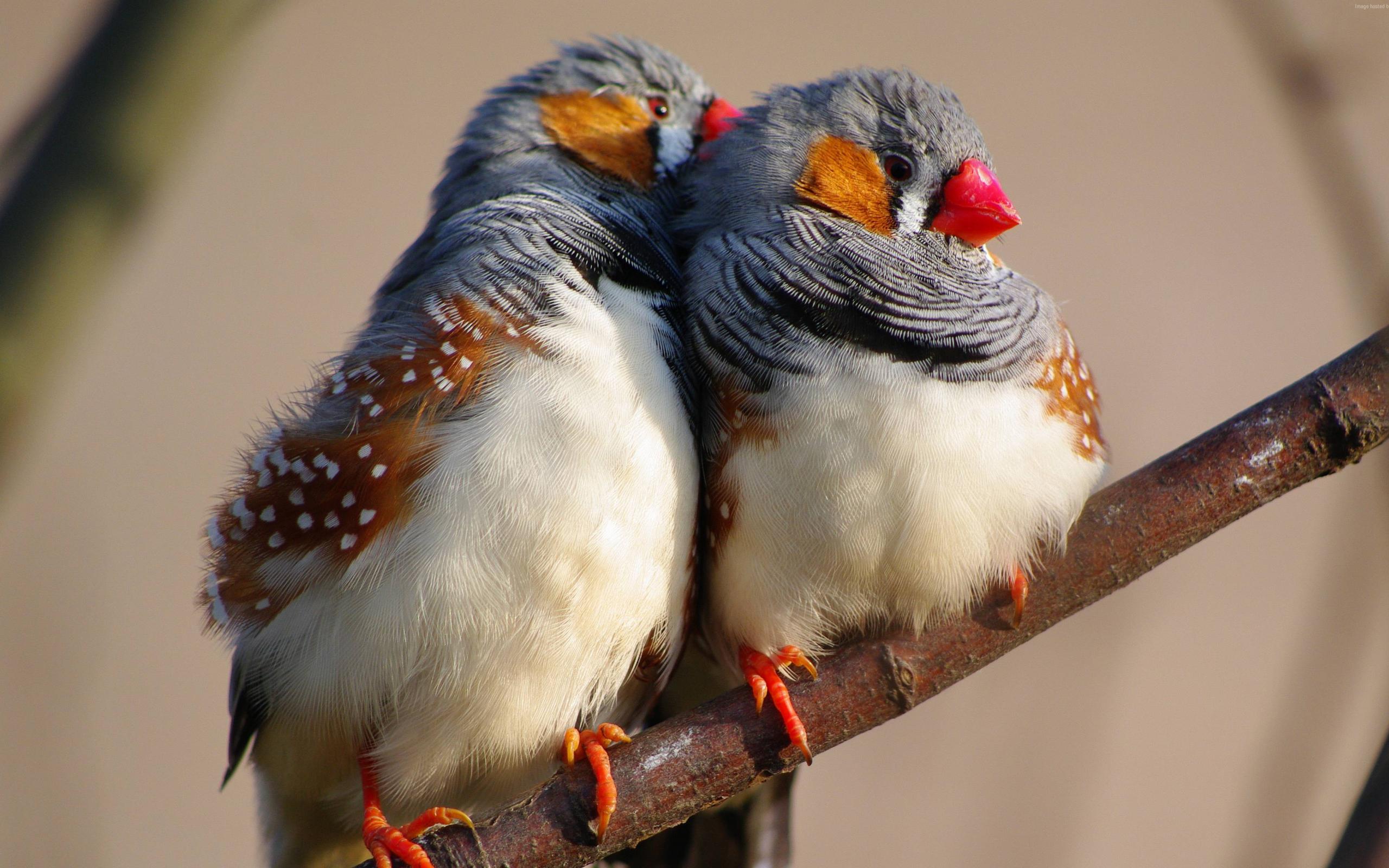 Wallpaper Two cute canaries on a tree branch