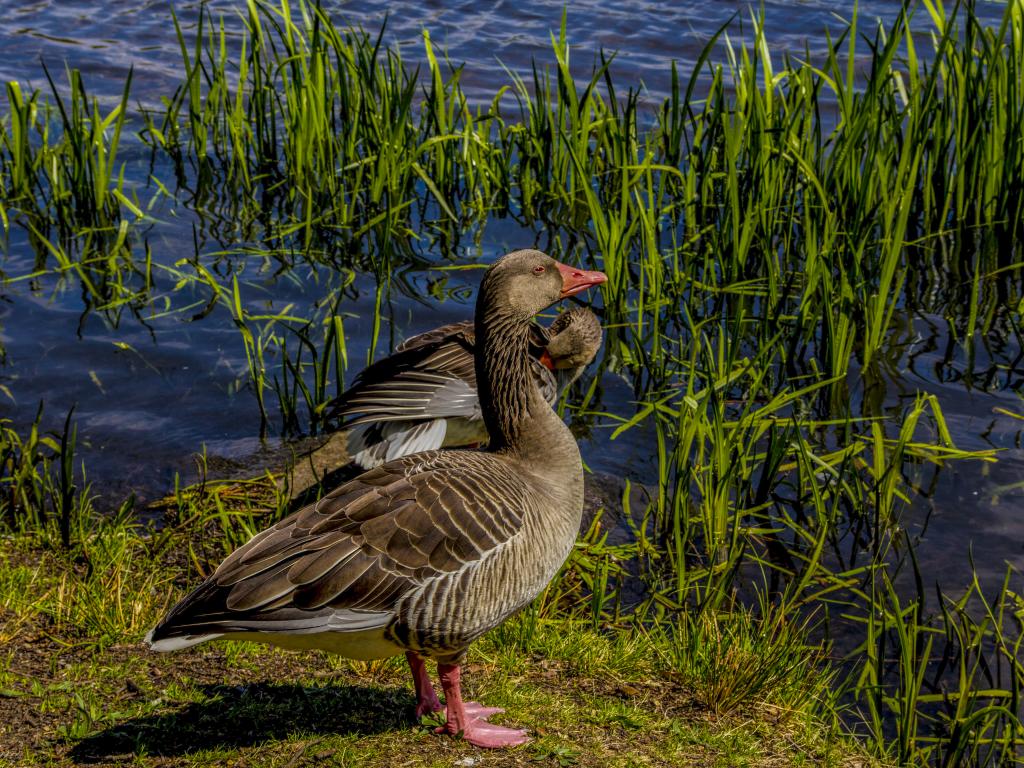 » Wallpaper Two large gray goose by the pond