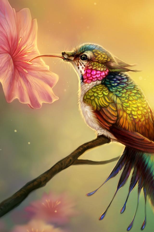 Wallpaper Fantastic bird hummingbird drinks nectar from a flower