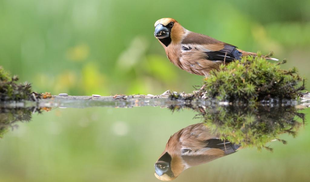 Wallpaper A small bird is reflected in the water