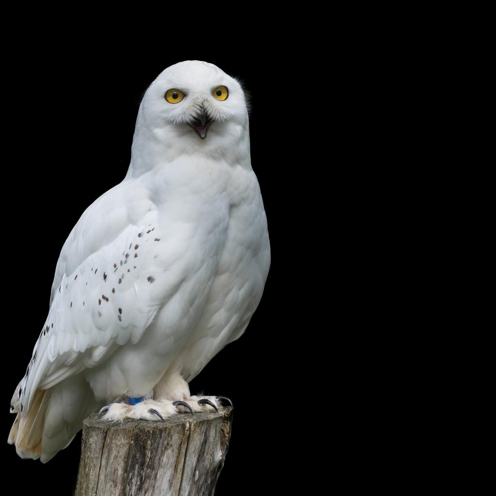 » Wallpaper Big snowy owl on a black background