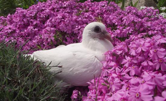 Wallpaper White dove sits in pink carnations