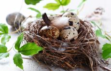 Wallpaper Three small chicks in a nest with eggs