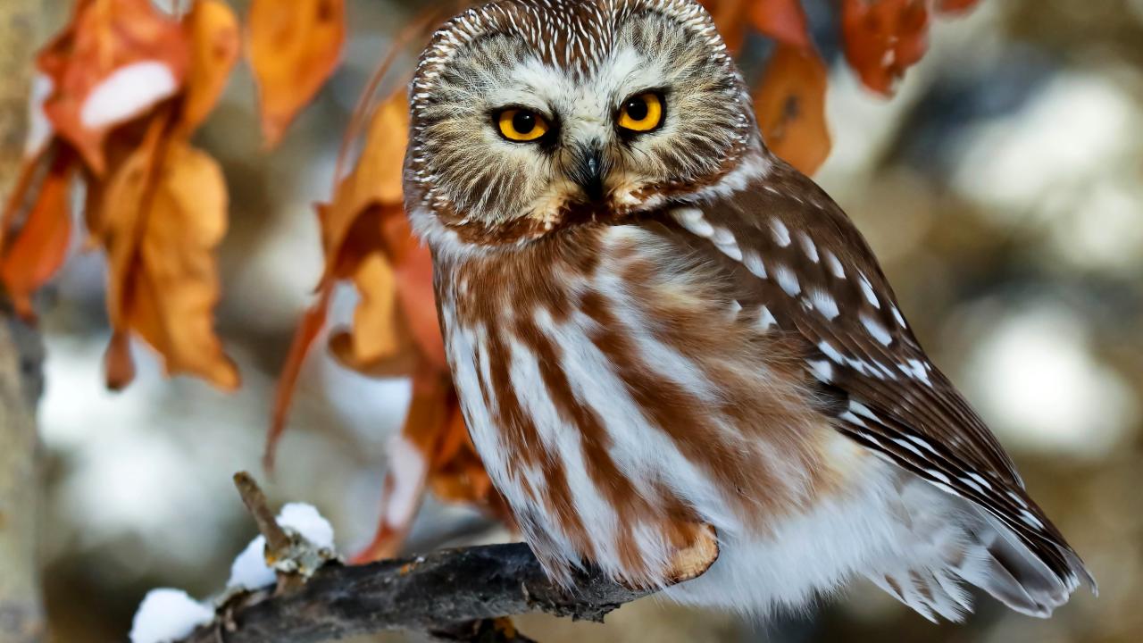Wallpaper Beautiful big owl with yellow eyes sitting on a branch