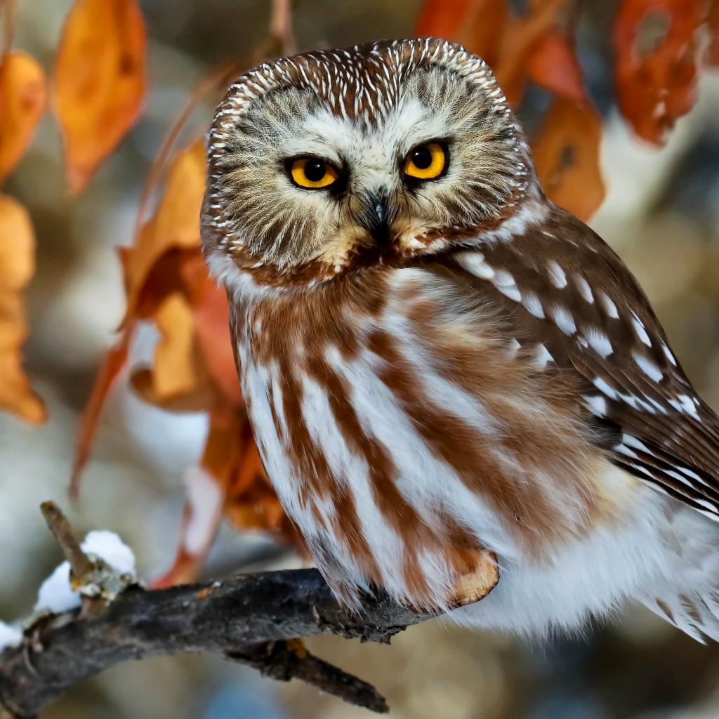 Wallpaper Beautiful big owl with yellow eyes sitting on a branch