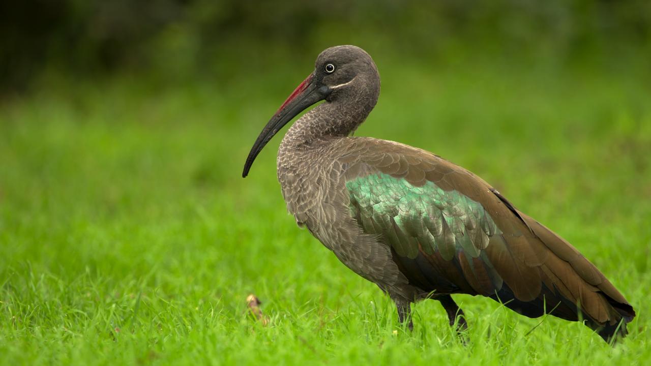 Wallpaper Big gray green-eyed cat lies on the green grass