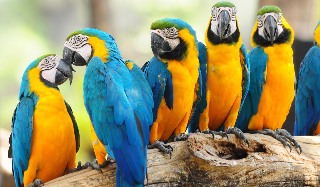Wallpaper Many parrots of macaws sit on a tree