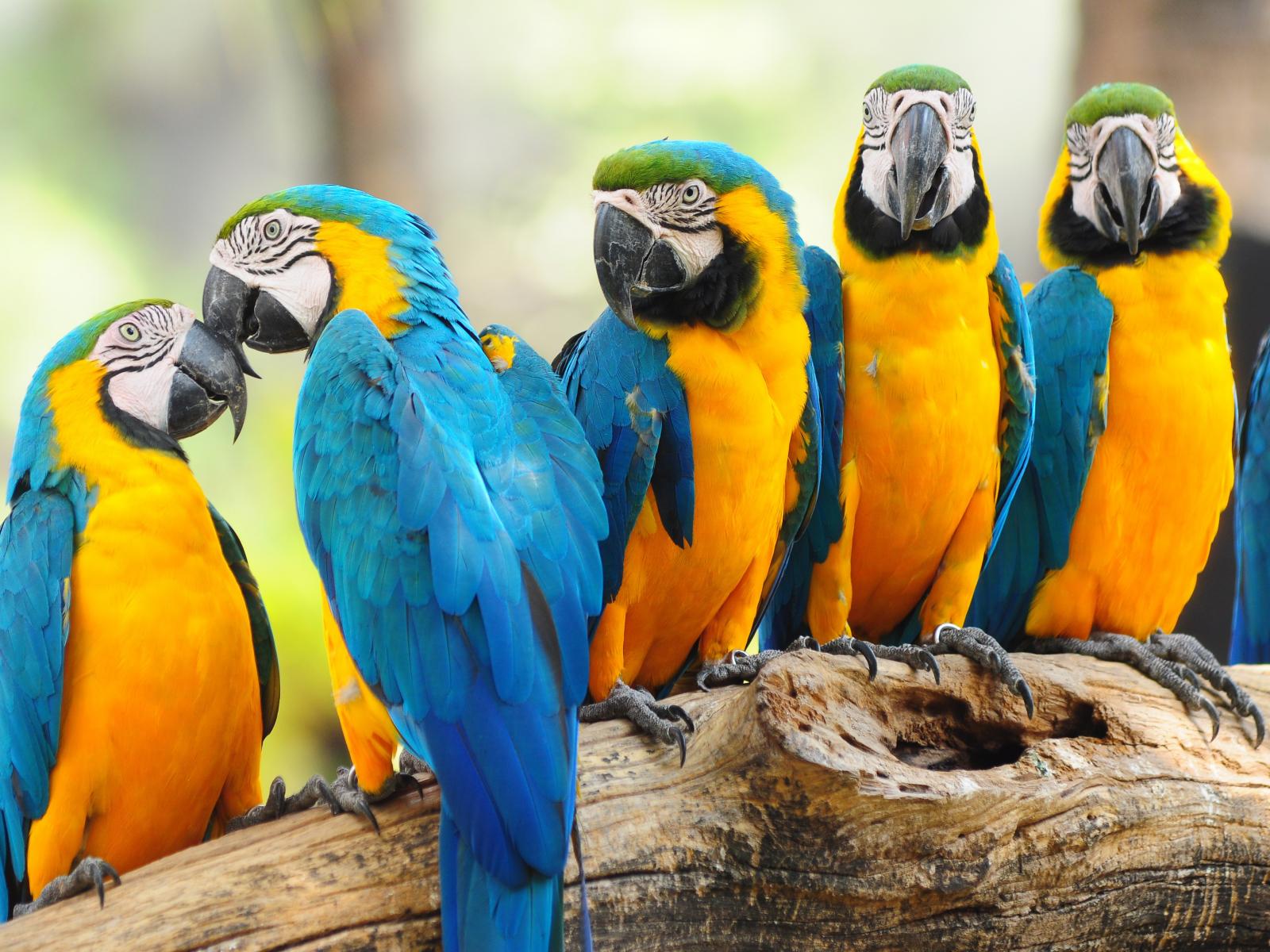 Wallpaper Many parrots of macaws sit on a tree