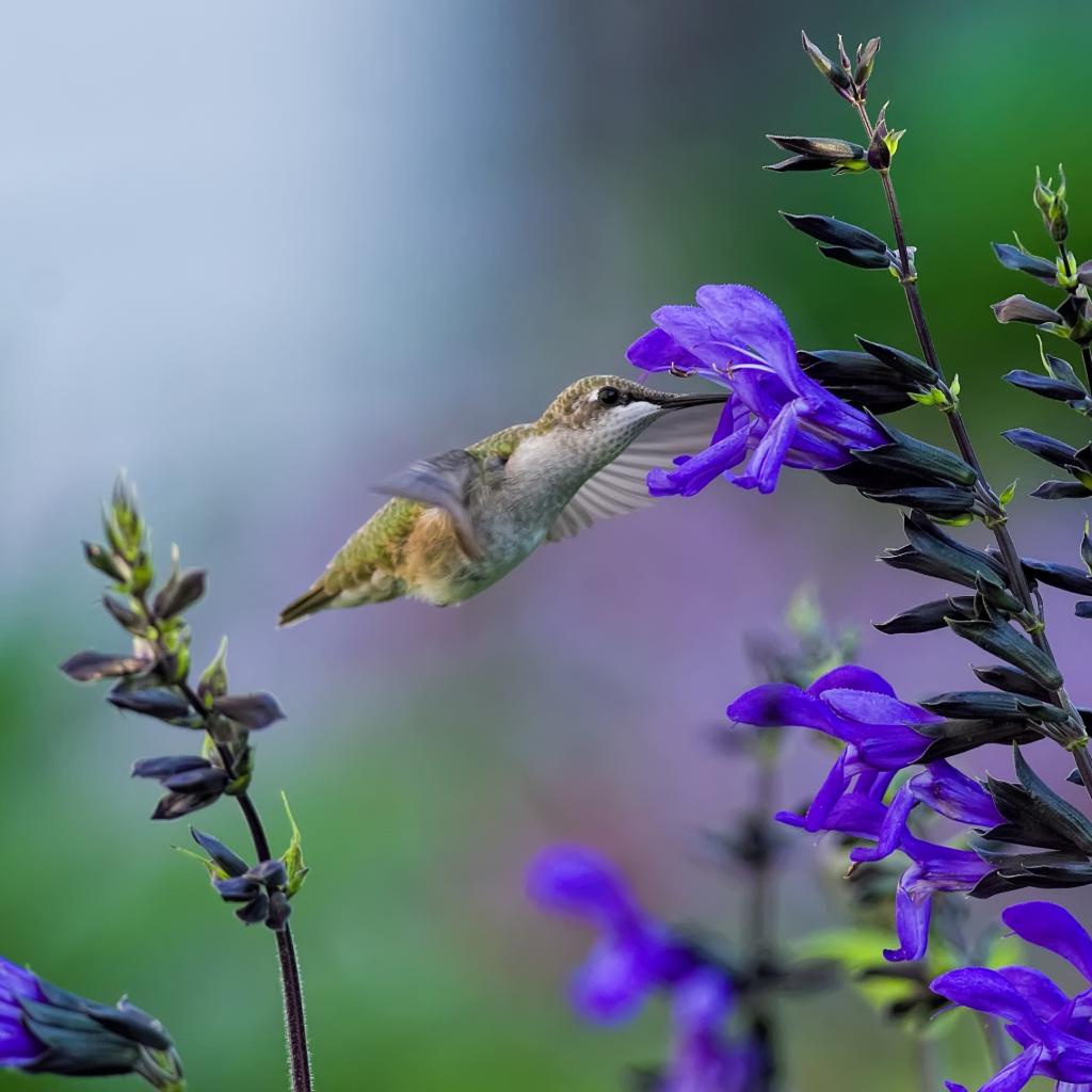 Wallpaper Bird of hummingbirds in purple flower