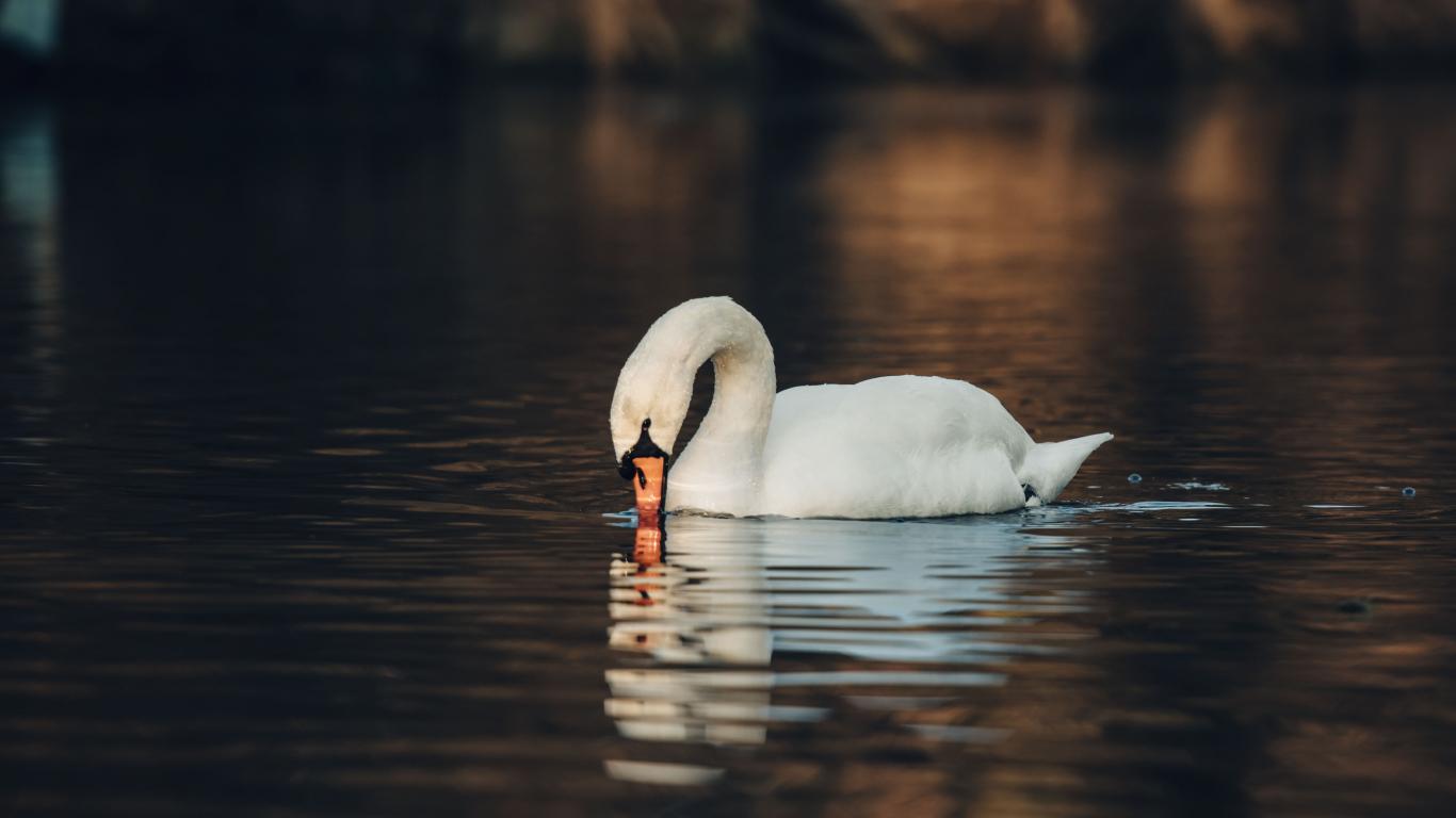 Wallpaper White swan mute in water