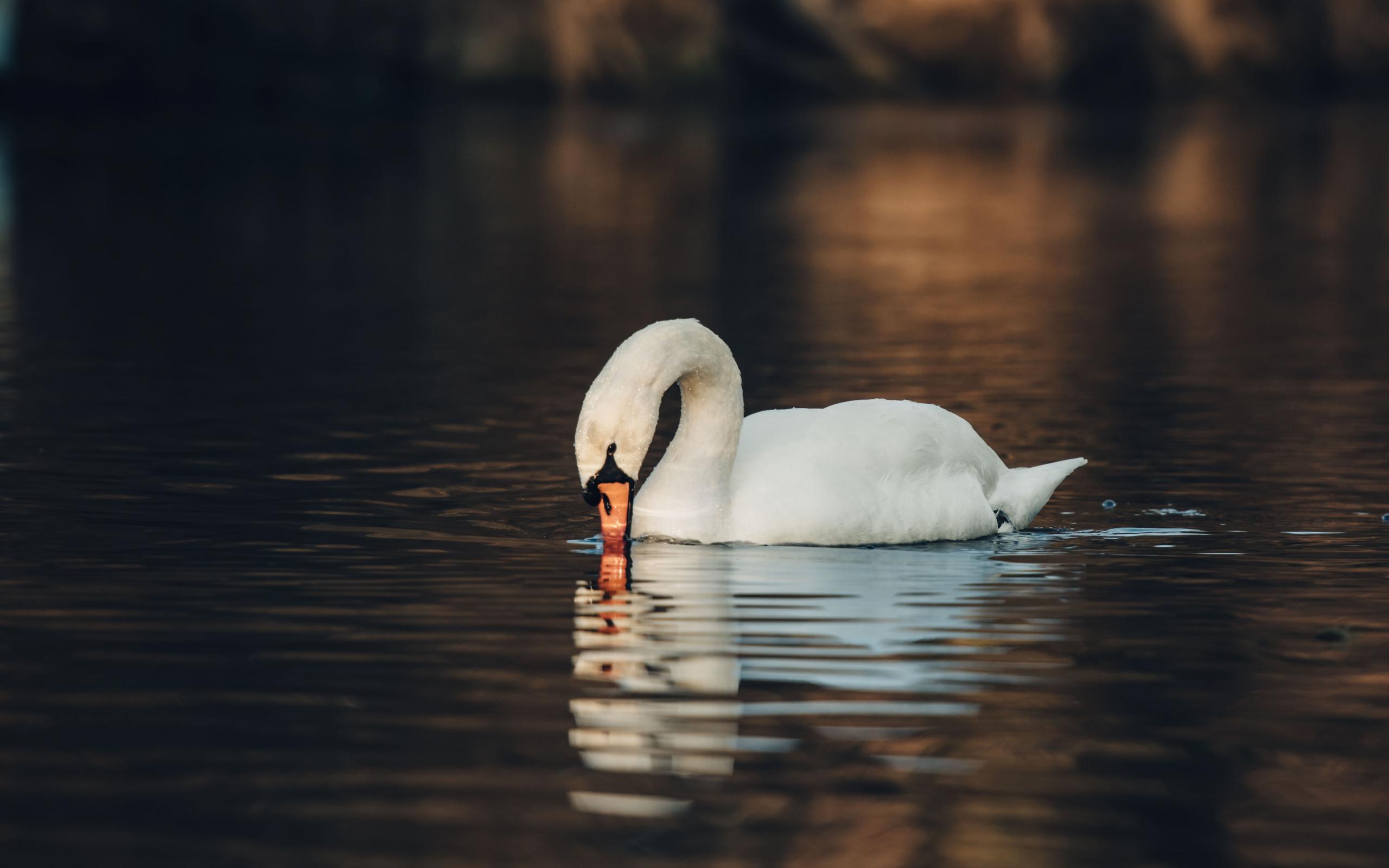 Wallpaper White swan mute in water