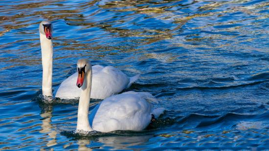 Wallpaper Two beautiful white swans in transparent water