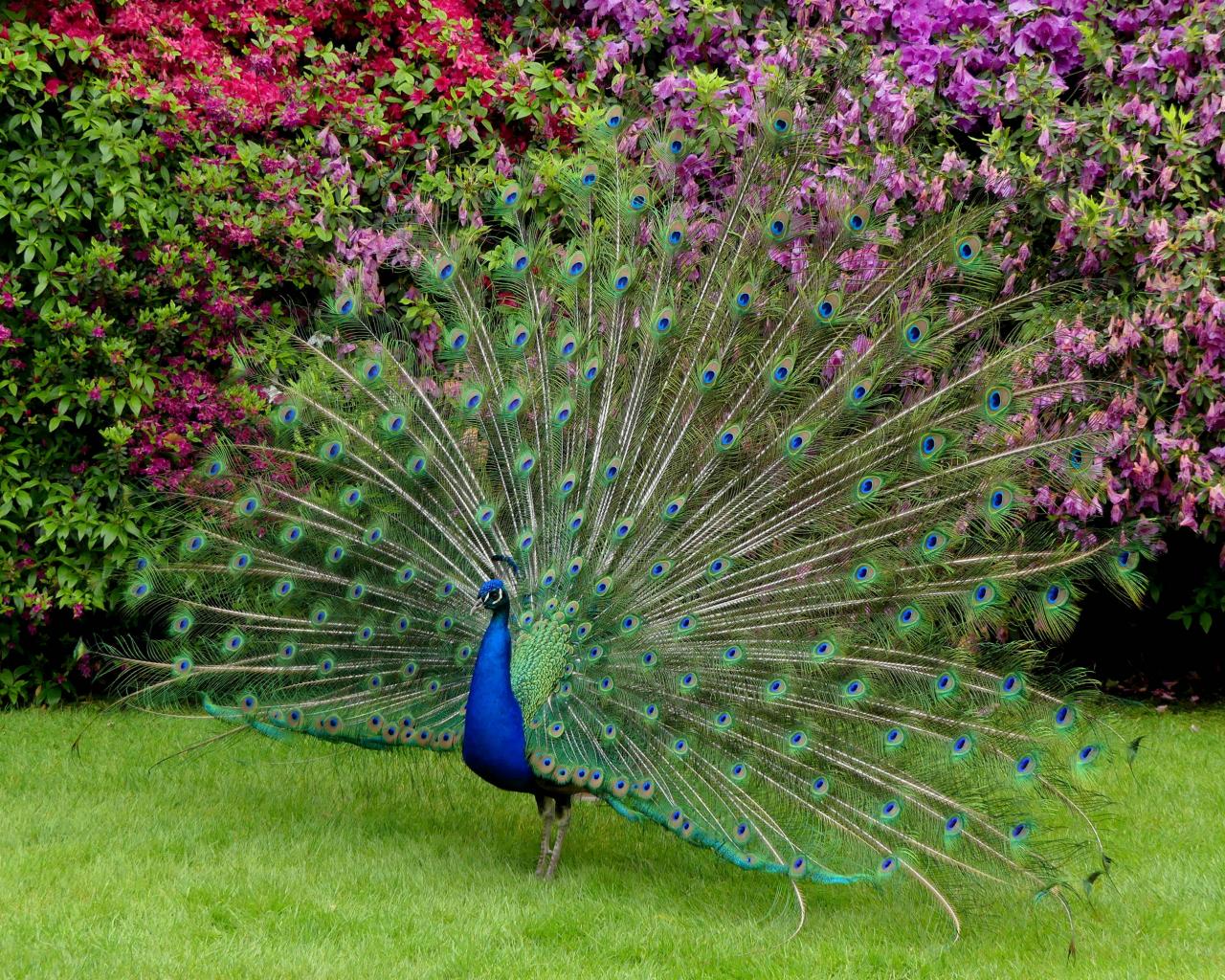 Wallpaper A beautiful peacock swelled its tail