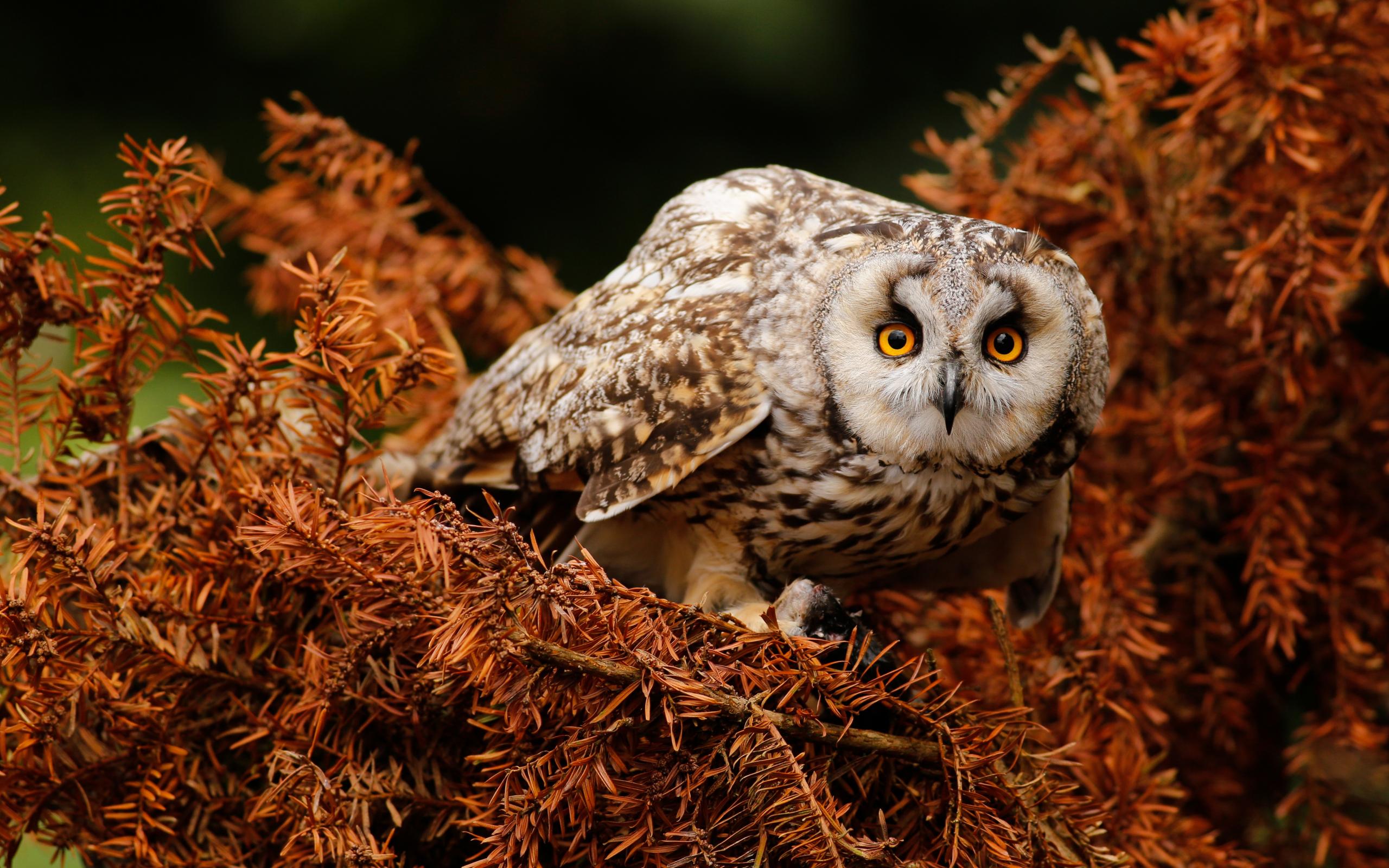Wallpaper Big owl with yellow eyes on a branch