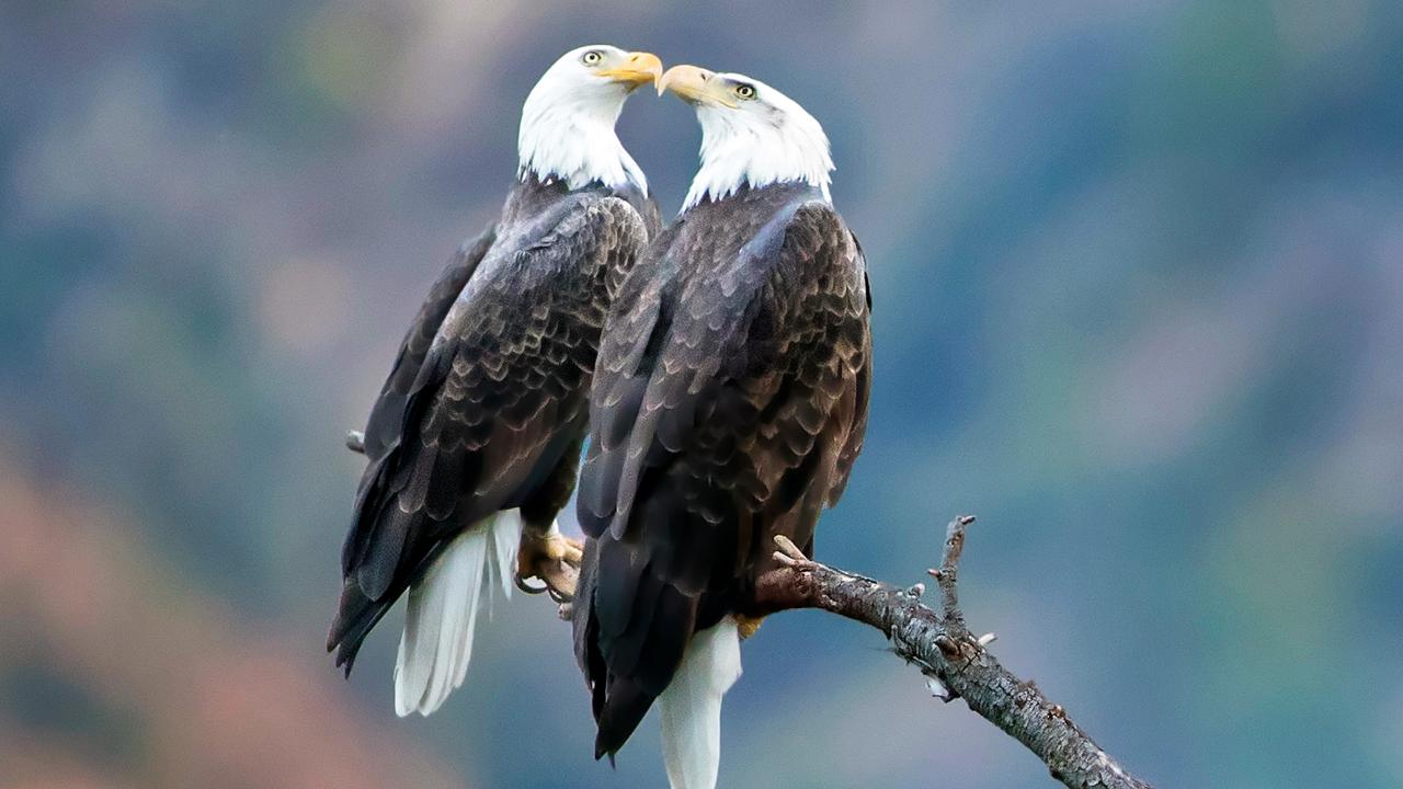 Wallpaper Two bald eagles are sitting on a branch