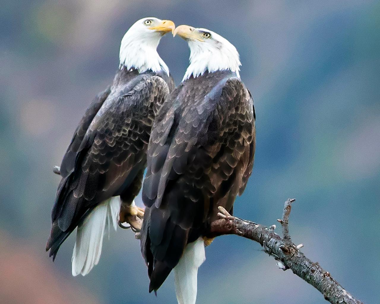 Wallpaper Two bald eagles are sitting on a branch