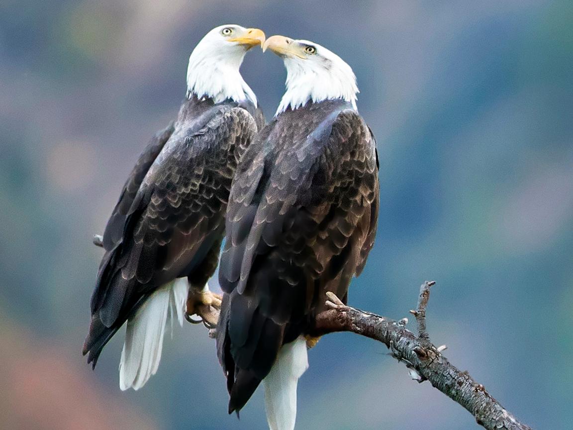 Wallpaper Two bald eagles are sitting on a branch