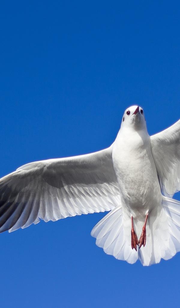 Wallpaper The big beautiful seagull is flying in the blue sky