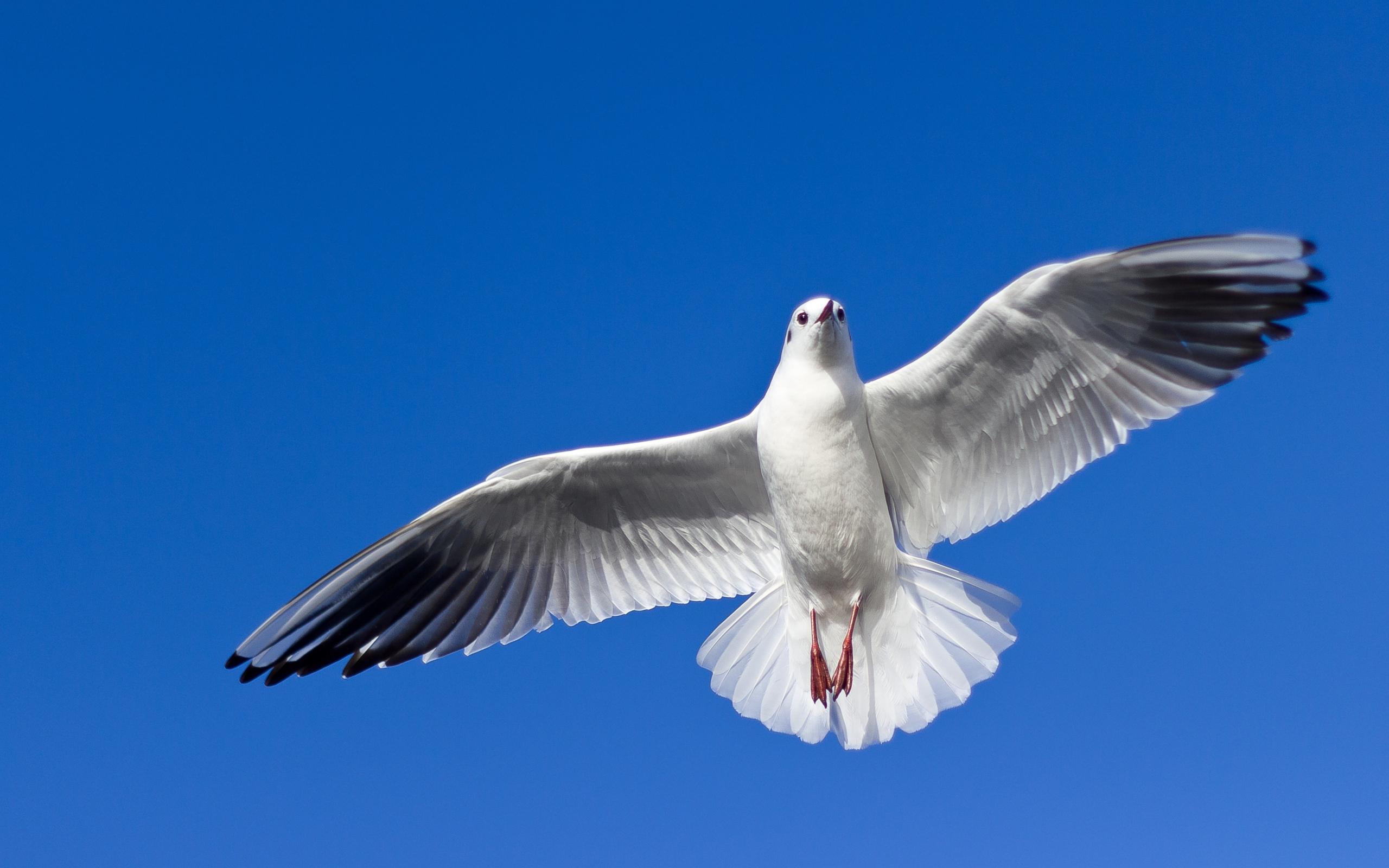 Wallpaper The big beautiful seagull is flying in the blue sky