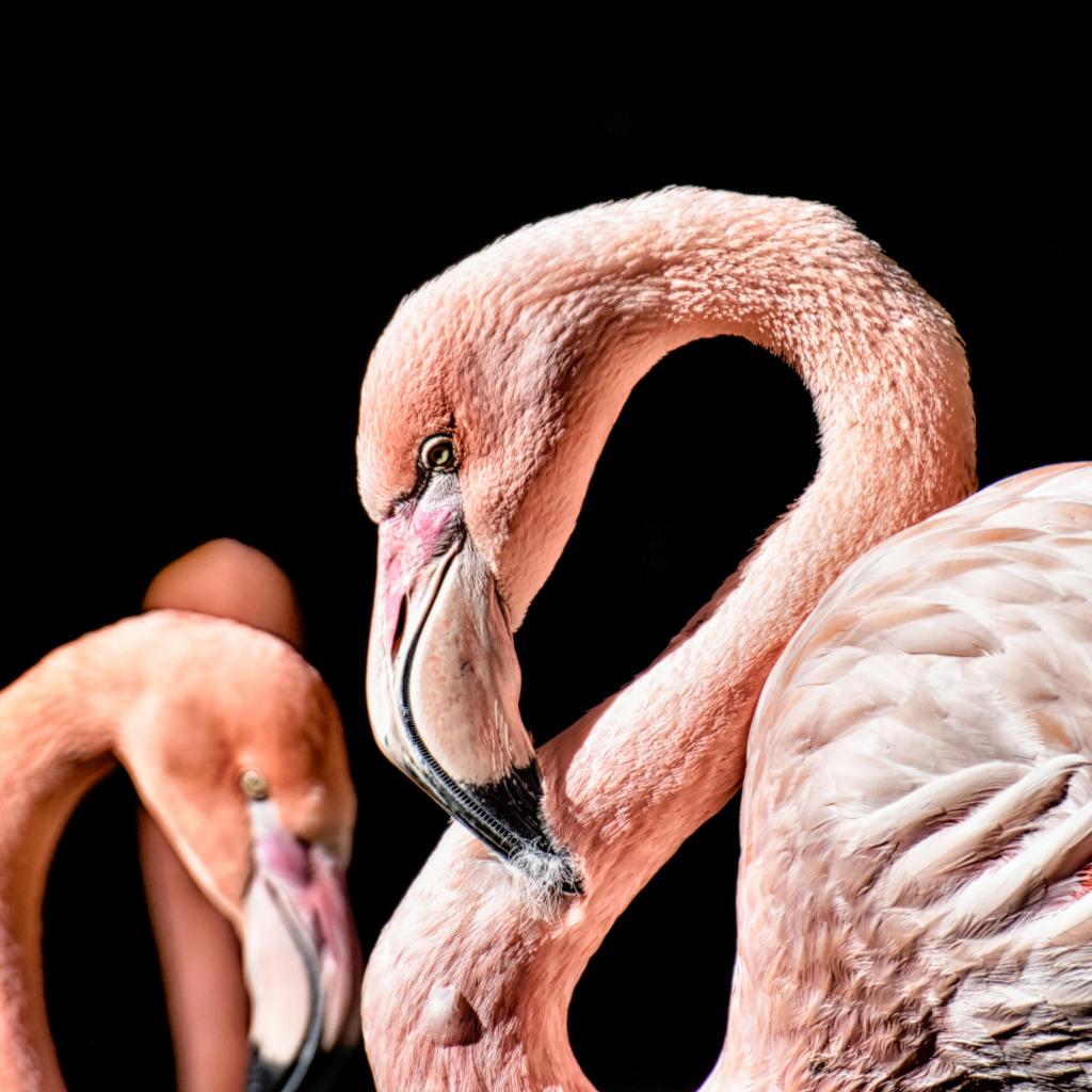 Wallpaper Pink flamingo on black background close up