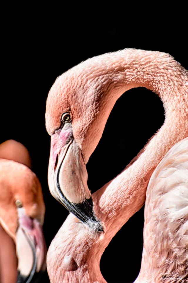 Wallpaper Pink flamingo on black background close up