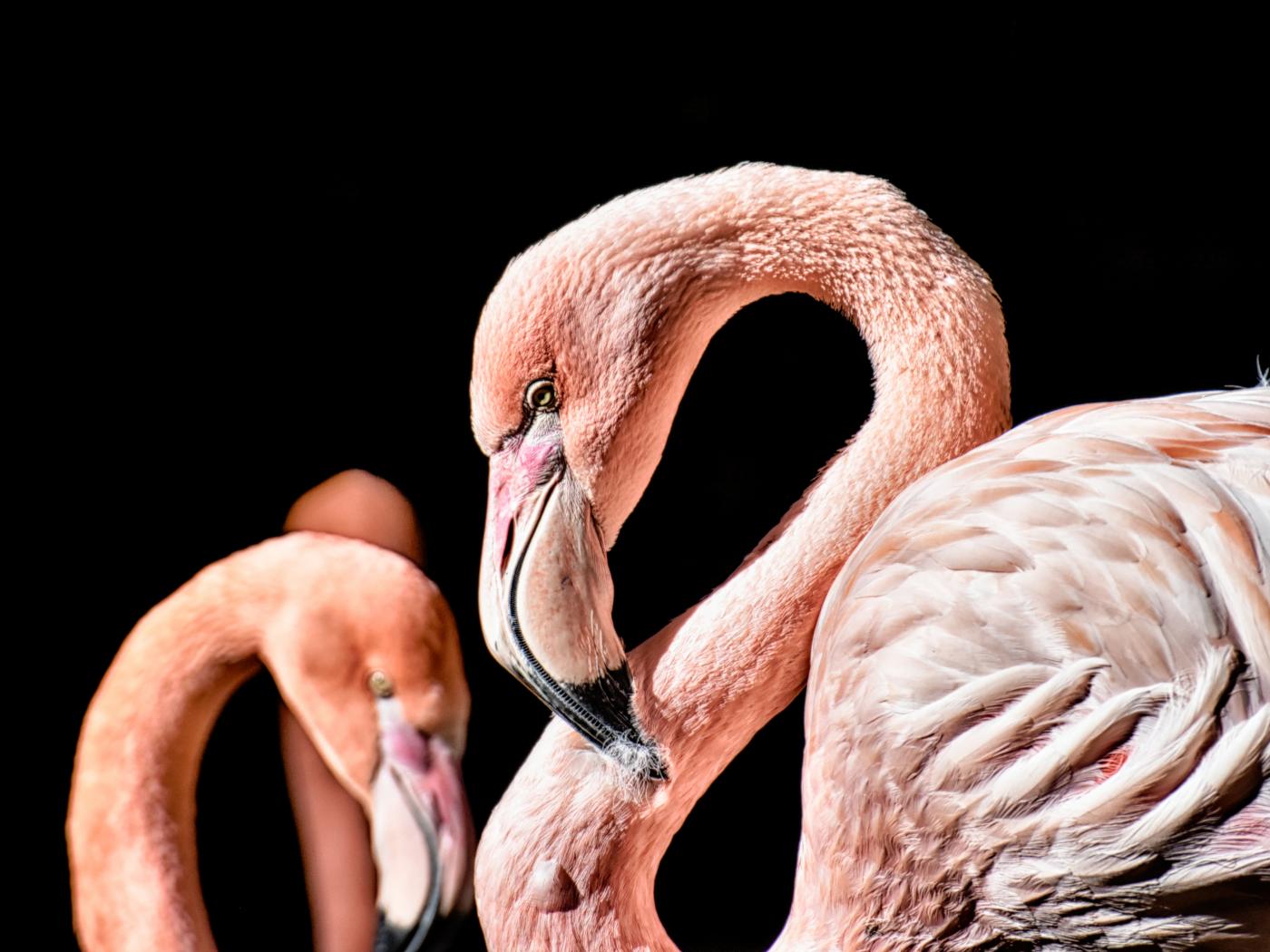 Wallpaper Pink flamingo on black background close up